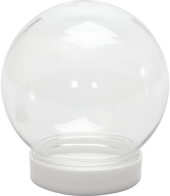 Maak je eigen mooie sneeuwbol met deze transparante kunststof bal met wit kunststof deksel die volledig waterdicht is. Personaliseer je sneeuwbol door decoraties op de bodem te lijmen en de bol te vullen met water en bijvoorbeeld glitter of kunstsneeuw. Maak kleine figuren of decoraties die in water ondergedompeld kunnen worden, zoals krimpfolie, gelamineerde foto's, figuurtjes van Fimo en Cernit, strijkkralen enzovoort. Plak de decoraties met een waterbestendige lijm op de bodem van het deksel. Vul de bol vervolgens met water en glitter of kunstsneeuw. Voor het beste resultaat vult u de sneeuwbol ongeveer een halve centimeter van de rand, afhankelijk van de dichtheid van de decoratie. Schroef vervolgens het deksel vast. U kunt het deksel ook versieren, bijvoorbeeld met schilderstape.