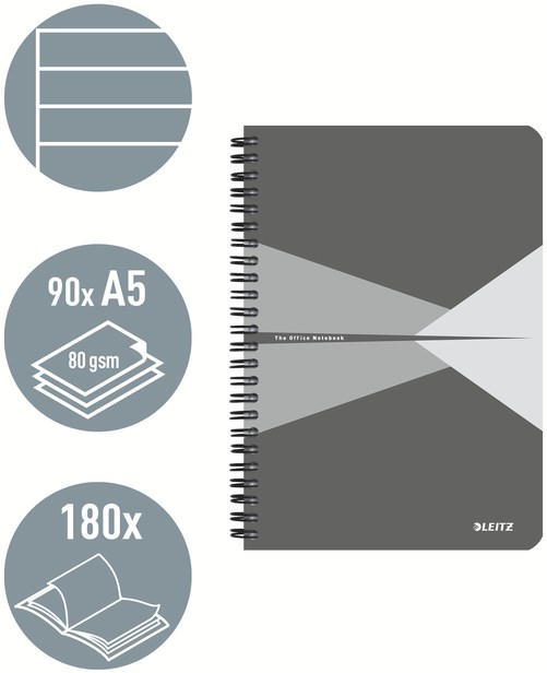 Notitieboek Leitz Office A5 lijn 180 pagina's 80gr grijs grijs