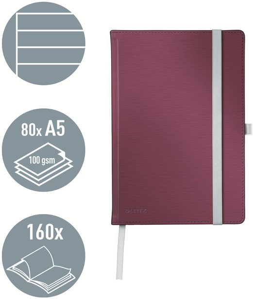 Notitieboek Leitz Style A5 lijn 160 pagina's 100gr rood