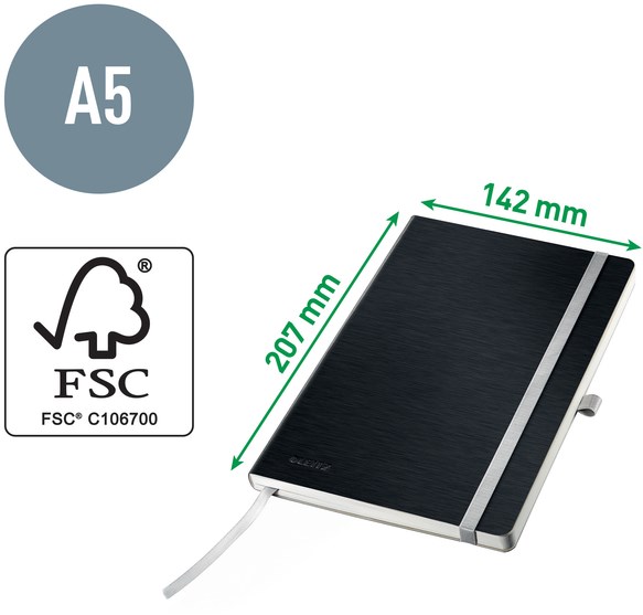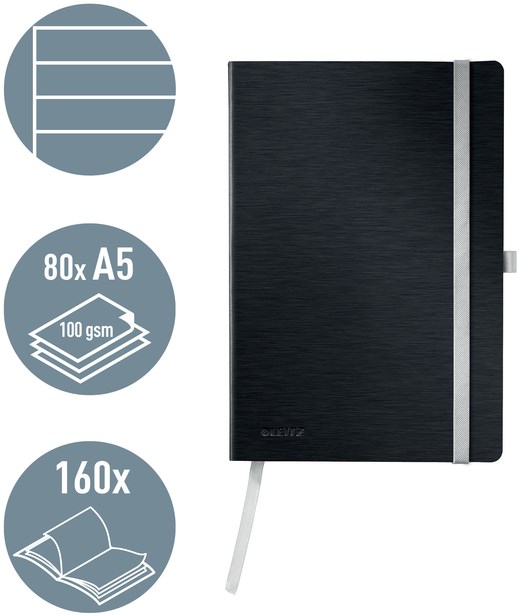 Notitieboek Leitz Style A5 lijn 160 pagina's 100gr zwart