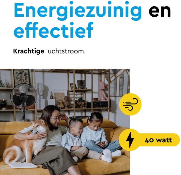 Krachtige en instelbare luchtstroom. Met drie instelbare snelheidsstanden kies je eenvoudig de perfecte verkoeling. Of je nu een zachte bries of een krachtige luchtstroom nodig hebt, deze ventilator past zich aan jouw wensen aan. Dankzij de grote ventilatorbladen en een vermogen van 40 watt geniet je binnen enkele seconden van een aangename temperatuur.
