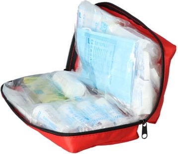 EHBO artikelen in handige rode tas