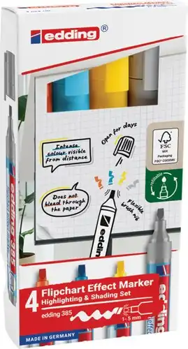 Viltstift edding 385 flipover penseelpunt assorti 4 stuks