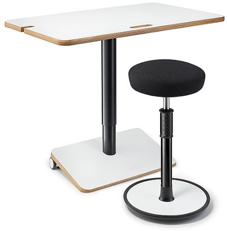 Dit compacte zit sta bureau is ontworpen voor iedereen die graag flexibel werkt. De flexibele werkplek is ideaal voor verschillende omstandigheden. Of je nu een thuiswerkplek hebt, een kantoor deelt met anderen of hem gebruikt tijdens een brainstormsessie in een vergaderruimte. Dankzij het slimme ontwerp neem je tafeltje overal makkelijk mee naartoe. Het onderstel heeft aan één zijde twee wielen waardoor je de tafel eenvoudig verplaatst. Het onderstel heeft hiermee een dubbele functie; het werkt als voetensteun en als verrijdbare basis.