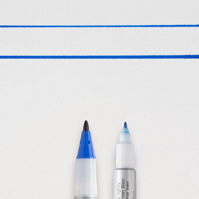 Ronde punt. Unieke algemene merkstift. Twee permanent markers in één: aan één zijde met een taaie glasvezelpunt, aan de andere zijde met een extra fijne kunststofpunt voor details.