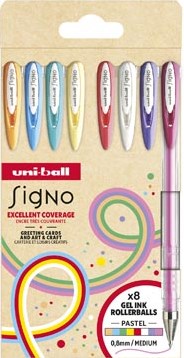 Uni-ball roller Signo Pastel, medium punt, geassorteerde kleuren, etui van 8 stuks