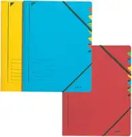 Voor het opbergen en sorteren van documenten. Met een elastiek om de documenten op hun plaats te houden en met inkepingen in kleur voor een snellere identificatie. Omslag in gekleurd karton van 450 g/m², interne pagina's in gekleurd karton van 320 g/m².