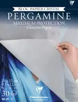 Pergamine gelijmd blok, kristalpapier, 30 vellen 24x32cm 45g Glanzend kristalpapier, 100% pure cellulose. Dit kristalpapier heeft een laag gramsgewicht, is soepel en heeft een hoge weerstand. Het is uitermate geschikt voor de bescherming van werken gemaakt met pastel, potlood of houtskool, maar kan ook worden gebruikt voor de bescherming van documenten of fotos. Zuurvrij en pH neutraal, voor een optimale bescherming. Naast de primaire toepassing is het ook geschikt zijn voor het verpakken van voorwerpen.