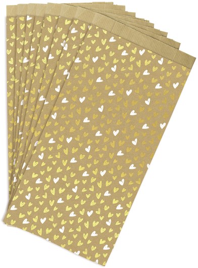 Etui met 50 kraft zakjes, 16x30+5cm harten. Een set van 50 kraft zakjes, ideaal om snoepjes, pralines, een pocketboek of ander klein geschenkje in te verpakken. Met een hartjes dessin voor een elegante en authentieke uitstraling. De zakjes zijn 16 x 30 cm, met een bodem van 5 cm diep. Dit formaat is ideaal voor het verpakken van kleine geschenken of lekkernijen. De kraft zakjes hebben een voedselveiligcertificering. Sluit het tasje met een etiket of sticker. Je kunt cijfers op de krafttasjes schrijven en zo een originele en persoonlijke adventskalender maken. Clairfontaine is de specialist in geschenkverpakking: onze kwaliteitsproducten beantwoorden aan al je eisen en behoeften! Met ons uitgebreid assortiment kan je het hele jaar door je mooiste geschenken verpakken en verfraaien.