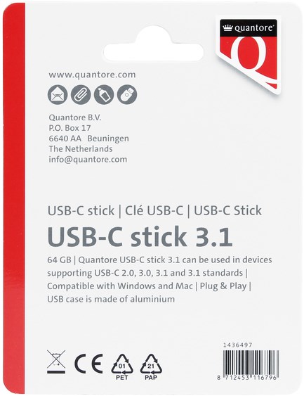 USB C stick Quantore USB-C 64GB 3.1 zilver