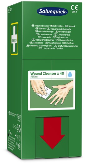 Inhoud: 40 st. Salvequick Wondreinigers 11x12 cm (Steriele fysiologische zoutoplossing).