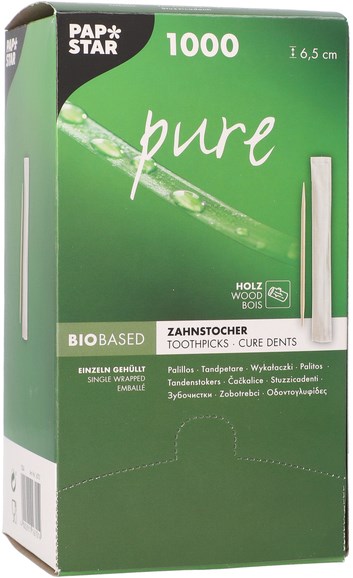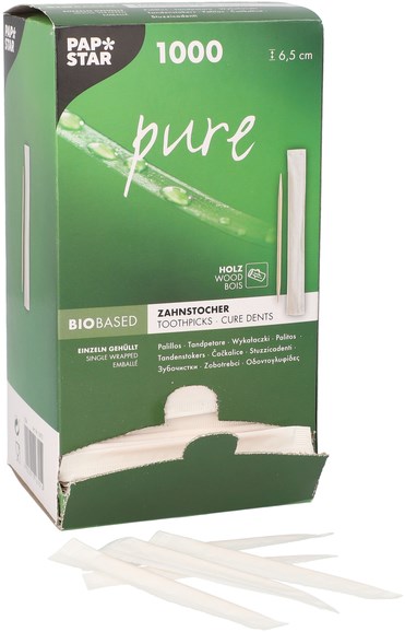 Tandenstoker Papstar Pure per stuk verpakt dispenser à 1000 stuks hout