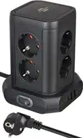 Energiebesparende stekkerdoos toren met slim gerangschikte stopcontacten in een ruimtebesparend torenontwerp voor een flexibele en ruimtebesparende indeling