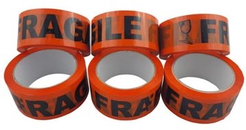 Verpakkingstape fragile breekbaar 50 mm x 66 m, oranje