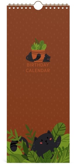 Gelukkige miauw-dag! Houd je verjaardagen altijd in de gaten met deze praktische verjaardagskalender! Deze kalender in het formaat 130x325 cm, met een schattig katje en een warme bruine tint zorgt ervoor dat je de speciale dagen van je vrienden en familie nooit meer zal vergeten.
