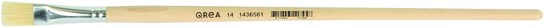• Kwast Qrea varkenshaar nr. 14 – 13,4mm Ontdek de veelzijdigheid van de Qrea varkensharen kwast nr. 14, een must-have voor elke kunstenaar en klusser. Met zijn platte vorm, stevige varkensharen en een bus van hoogwaardig plaatmetaal biedt deze kwast uitstekende controle en duurzaamheid. Het ruwe handvat van blank hout ligt stevig in de hand, ook bij langdurig gebruik. Ideaal voor het aanbrengen van verf, primers, vernissen, lijm en zelfs voor technieken zoals impasto – deze kwast is inzetbaar bij talloze toepassingen en maakt elk project netter en professioneel. Kenmerken: