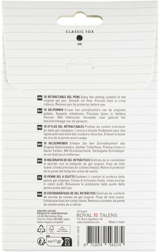 Ervaar soepel en levendig schrijven met de Sakura Gelly Roll gelpennen met klikfunctie! De Gelly Roll Classic bevat een gel inktformule die snel droogt en verkrijgbaar is in een reeks prachtige, levendige kleuren voor optimale leesbaarheid. De pen is perfect voor iedereen die graag schrijft. Begin direcht door de handige klikfunctie. En schrijf moeiteloos, dankzij een rijke en consistente inktstroom. Met de precieze penpunt maak je scherpe, strakke lijnen voor het maken van aantekeningen, het bijhouden van een dagboek bijhouden of het tekenen van doodles.Breng je ideeën tot leven met de Gelly Roll gelpen met klikfunctie: jouw ultieme pen voor levendig en moeiteloos schrijven!