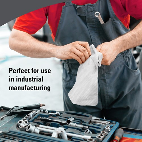 WypAll® X80 Power Clean™ poetsdoeken zijn ontwikkeld voor zware schoonmaaktaken in industrie en voedselbereiding. Dankzij de sterke Hydroknit™-technologie zijn de doeken scheurvast, herbruikbaar en zeer absorberend. Ze nemen olie, vet en vloeistoffen snel op en zijn geschikt voor sproei- en veegtoepassingen met diverse reinigings- en desinfectiemiddelen. De doek-voor-doek afgifte voorkomt verspilling en bevordert hygiëne. Verpakt in een beschermende plastic zak en compatibel met de WypAll®-dispenser. Ideaal voor werkplaatsen, keukens en productieomgevingen.