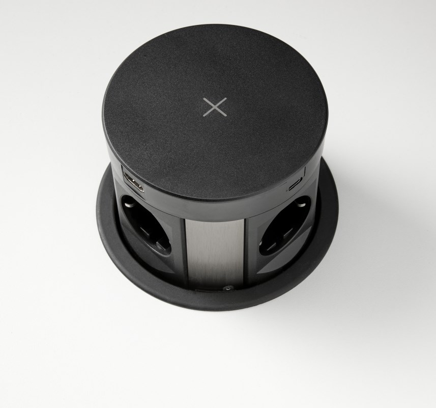 Een pop up stekkerdoos in je bureau is dé oplossing om altijd voldoende aansluitingen binnen handbereik te hebben. Deze moderne inbouwstekkerdoos combineert gemak, functionaliteit en een strak design. Met een druk op de bureau stekkerdoos komen de aansluitingen omhoog en heb je direct toegang tot stroom, USB, HDMI en netwerk. Handig in je bureau, vergadertafel of thuiswerkplek. Wanneer je de stekkerdoos niet nodig hebt, schuif je deze eenvoudig terug in je bureau en blijft het werkblad netjes opgeruimd. Ingeschoven is de bovenzijde van de bureau stekkerdoos een draadloze lader voor smartphones die draadloos laden ondersteunen.