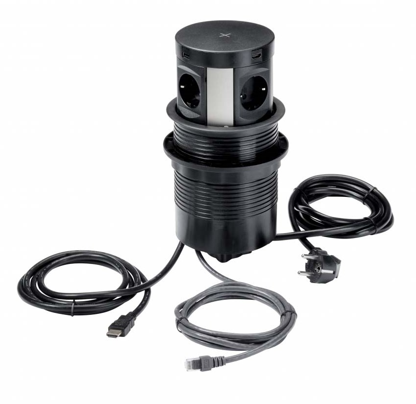 Pop up bureau stekkerdoos met draadloze lader voor inbouw in bureau