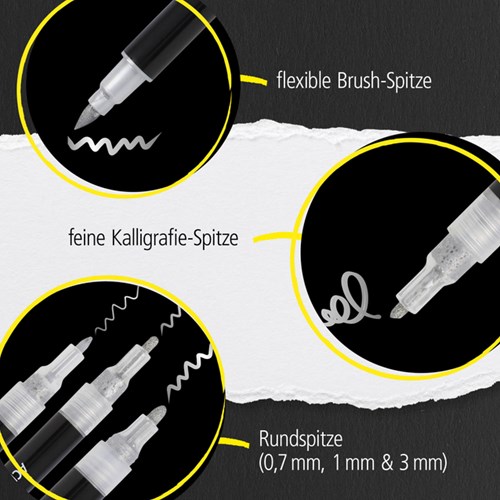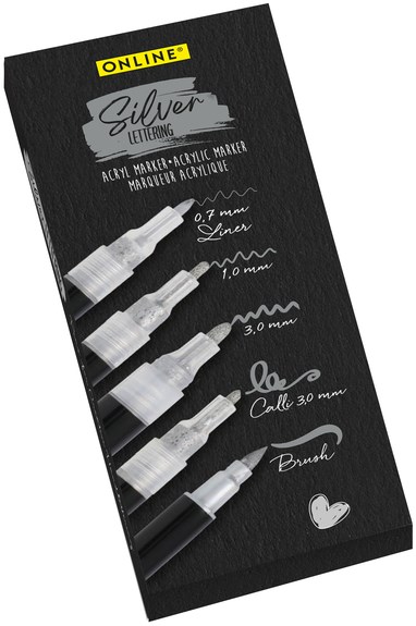 Acrylmarker Online lettering 5 breedtes zilver met elegante glans zwart