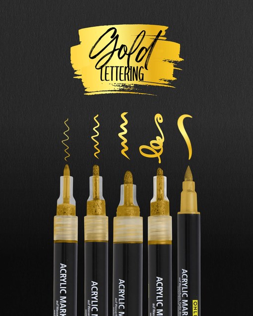 Acrylmarker Online lettering 5 breedtes goud met elegante glans zwart
