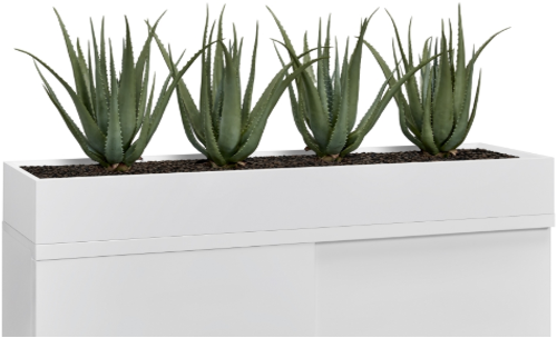 - Combineert opbergen, akoestiek en groen in één meubel zonder extra vloeroppervlak.