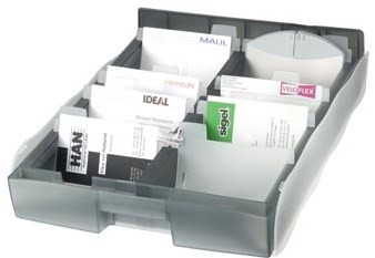 Capaciteit: 2.000 kaartjes. Bij opening glijdt het deksel onder de fichebak. Mogelijkheid om het deksel te personaliseren. Geleverd met 8 verzetbare indexen en een alfabetische index (16 stuks). Ft 215 x 300 x 68 mm. Kleur: transparant grijs.