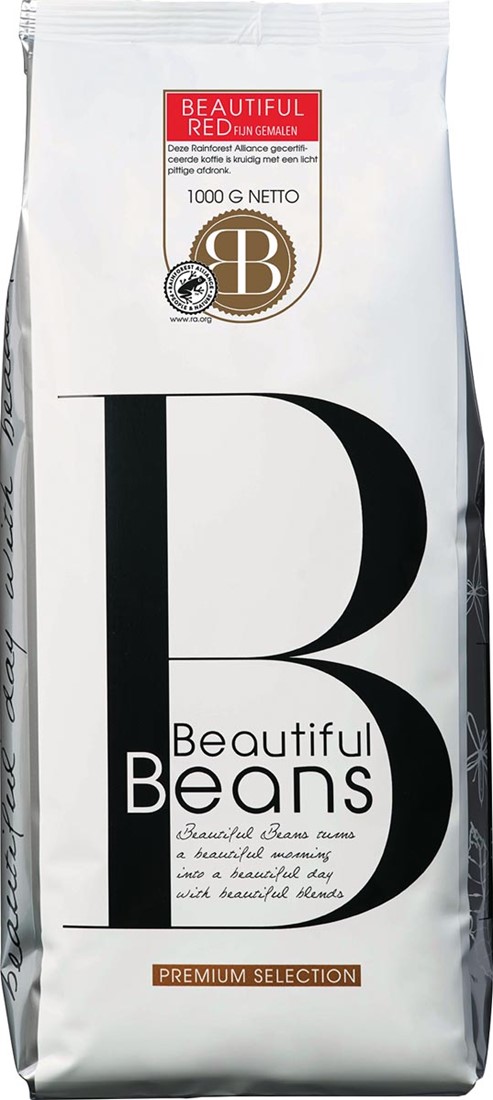 Artikelomschrijving Beautiful Beans gemalen koffie Red, zak van 1kg