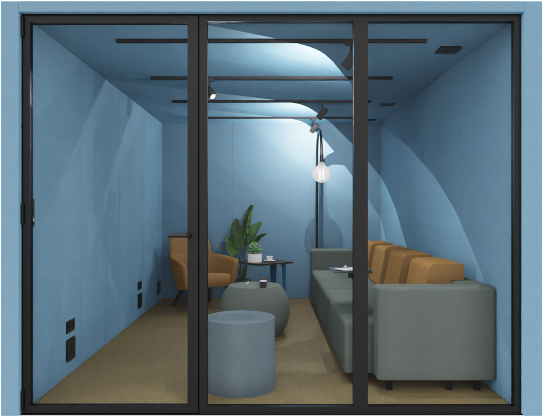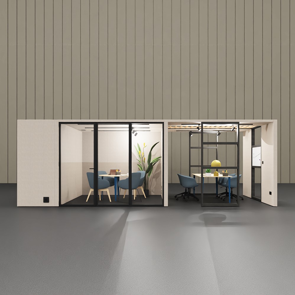 Artikelomschrijving Modulaire Meetingroom M+ Medium - Hoogwaardige overlegcabine met dichte achterwand