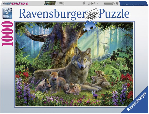 Artikelomschrijving Puzzel Ravensburger Familie wolf in het bos 1000 stukjes