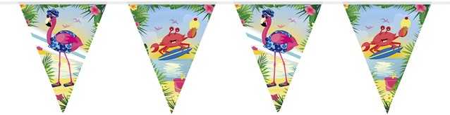 Breng een authentieke tropische sfeer naar je feest met de flamingo vlaggenlijn! Met een kleurrijke ontwerp en levendige toekan-afbeeldingen is deze vlaggenlijn de perfecte decoratie om een ??feestelijke en zomerse sfeer te creëren.