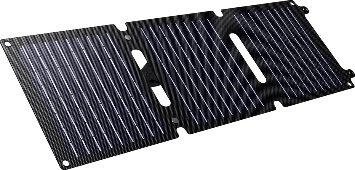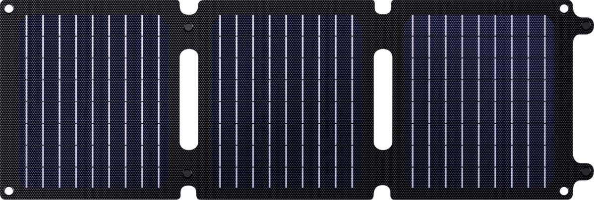 3 panelen, Input: 20 W, output: 12 W (USB-A), 15 W (USB-C)