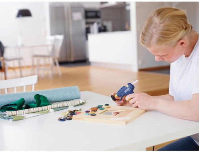 Uit ABS en metaal. Snoerloos lijmpistool voor maximale flexibiliteit. Voor lijmpatronen van 7 mm.