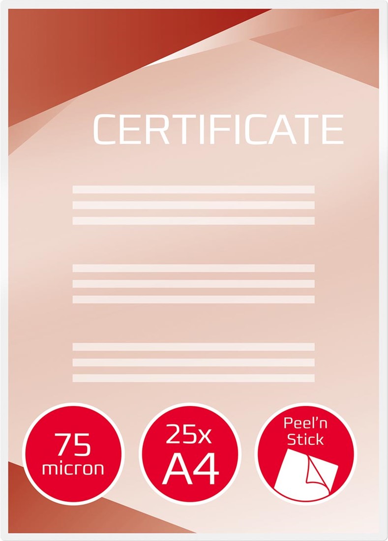 Ideaal om snel professionele, opvallende borden te maken. De achterzijde heeft een kleeflaag die hecht op de meeste materialen, waaronder glas, metaal en karton. U hoeft slechts het schutblad te verwijderen om de lamineerhoes op de gewenste ondergrond teplakken.