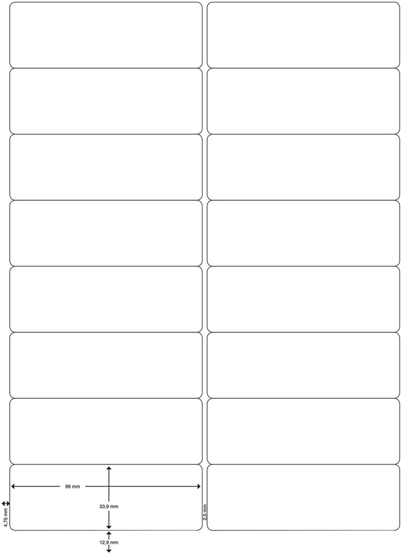 ft 99,1 x 33,9 mm, ronde hoeken, 100 vel, 16 etiketten per vel, 1.600 etiketten