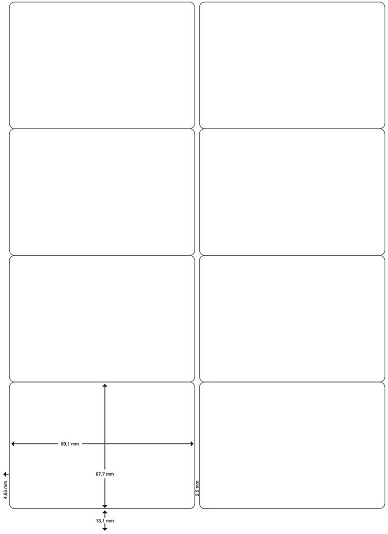 ft 99,1 x 67,7 mm, ronde hoeken, 100 vel, 8 etiketten per vel, 800 etiketten