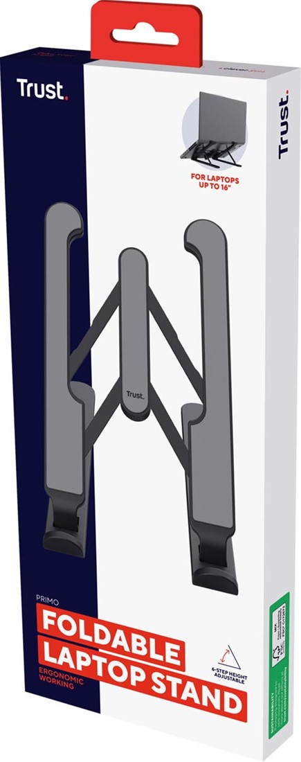 Artikelomschrijving Trust Primo laptopstandaard, opvouwbaar, grijs