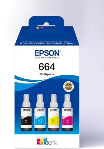 Artikelomschrijving Epson inktfles 664, 4.500 - 7.500 pagina's, OEM C13T664640, 4 kleuren