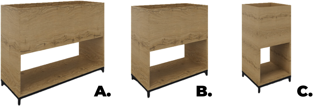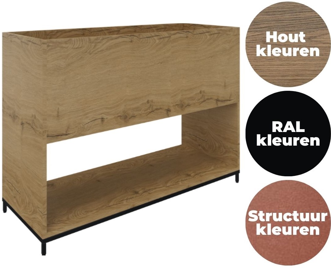 Stel een vraag over Plantenbak 2OH op metalen 4-poots sokkel 85 hg x 43 dp met 1 vak volledig open