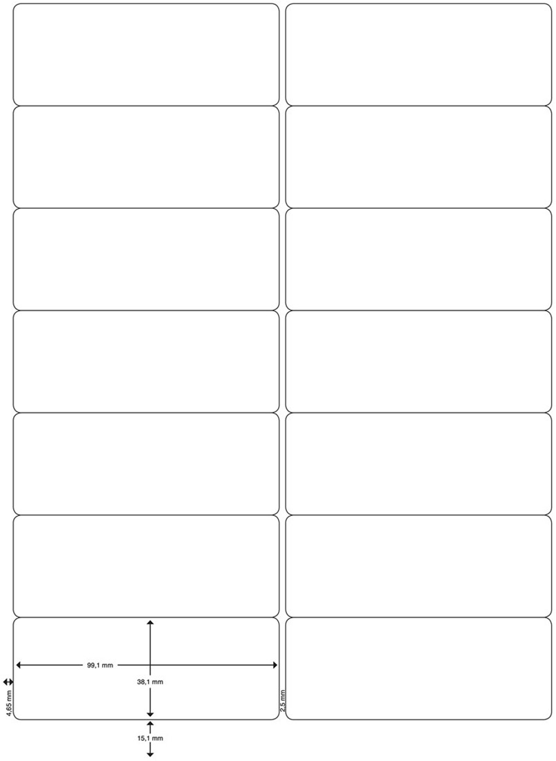ft 99,1 x 38,1 mm, ronde hoeken, 100 vel, 14 etiketten per vel, 1.400 etiketten