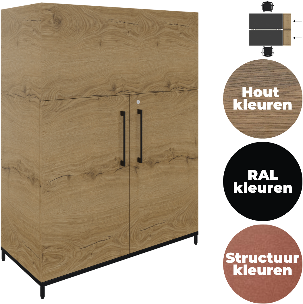Specificaties Plantenbak 3OH op metalen 4-poots sokkel 124 hg x 43 dp 2 vakken met 2 draaideuren
