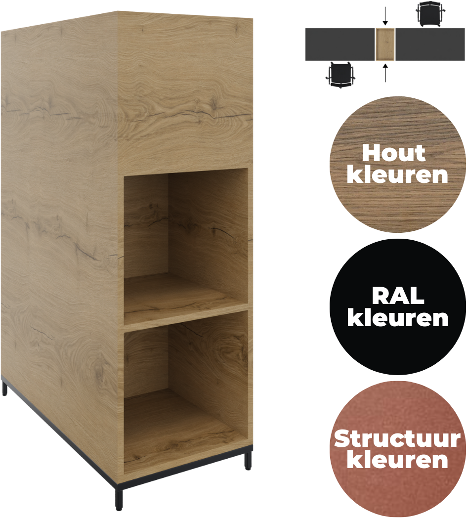 Stel een vraag over Plantenbak 3OH op metalen 4-poots sokkel, 43 br x 124 hg 2 x 2-vaks met dichte achterzijde