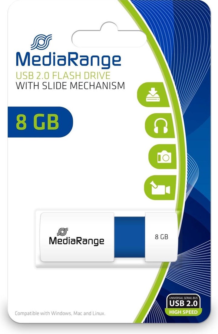 Specificaties USB stick MediaRange Premium 8GB USB 2.0 blauw/wit