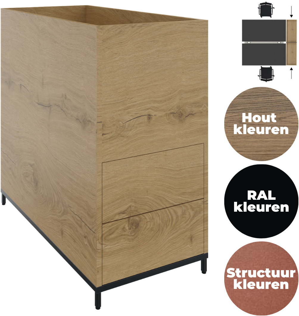 Stel een vraag over Plantenbak 2OH op metalen 4-poots sokkel, 43 br x 85 hg met 2 uittreklades