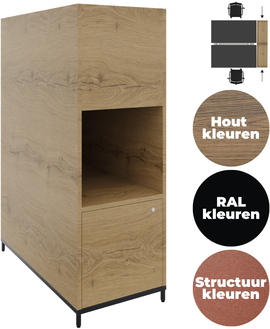 Stel een vraag over Plantenbak 3OH op metalen 4-poots sokkel, 43 br x 124 hg 1 x open vak en 1 x draaideur push to open