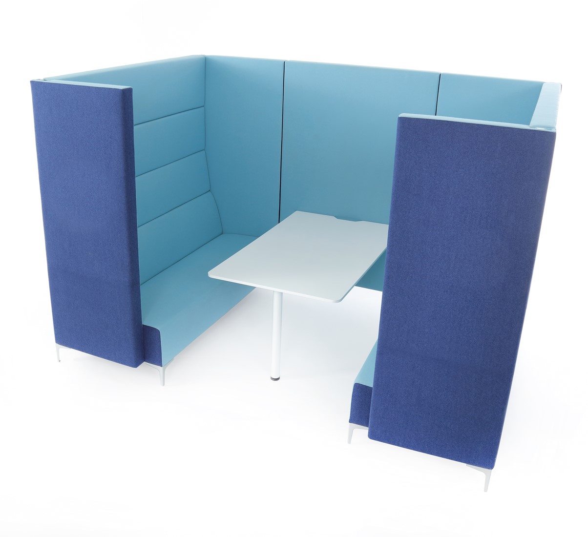 Prijs op basis van Cara Highline, 2 x 2,5 zits, achterwand van 120 cm, tafel in HPL 90X125 cm en ingevoerd instofgroep B