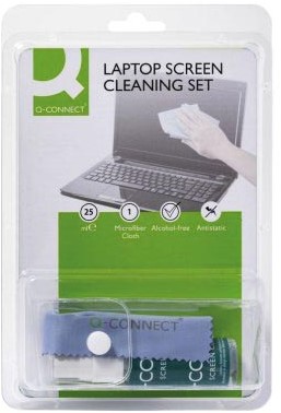 Stel een vraag over Q-CONNECT reinigingsspray, voor scherm en toetsenbord, inclusief doek, 25 ml