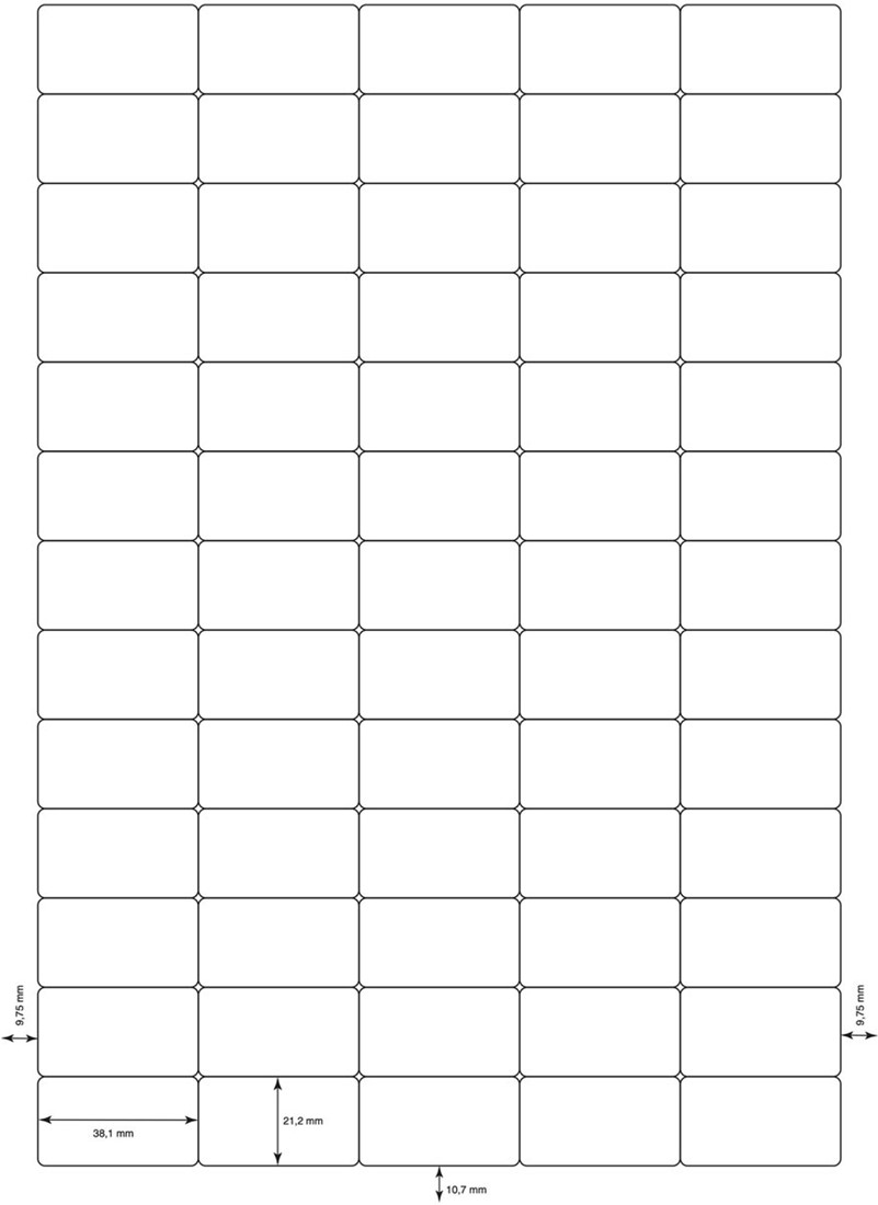 ft 38,1 x 21,2 mm, ronde hoeken, 100 vel, 65 etiketten per vel, 6.500 etiketten