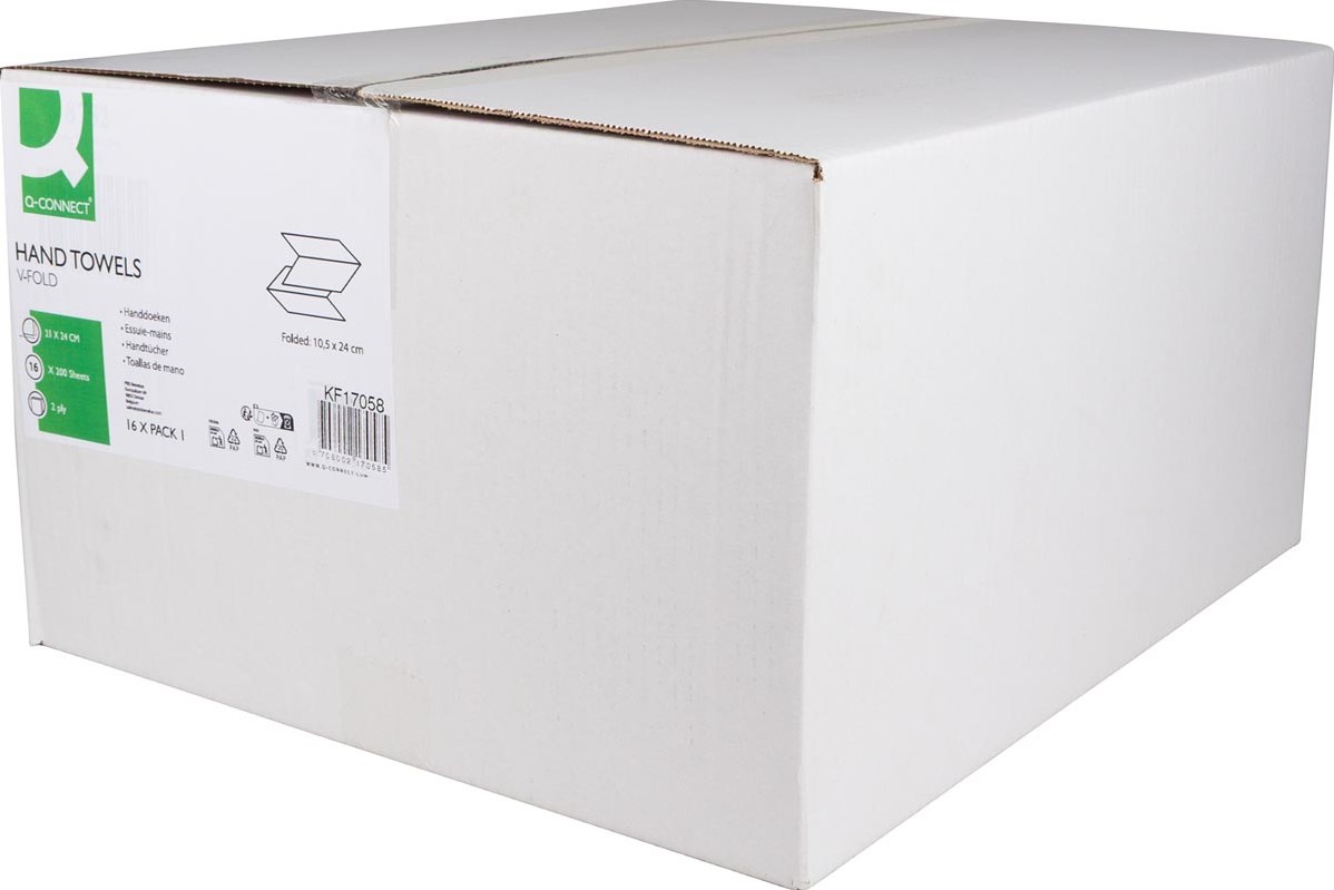 Accessoires Q-CONNECT handdoek, papier, V-vouw, 2-laags, 200 vel, pak van 16 stuks